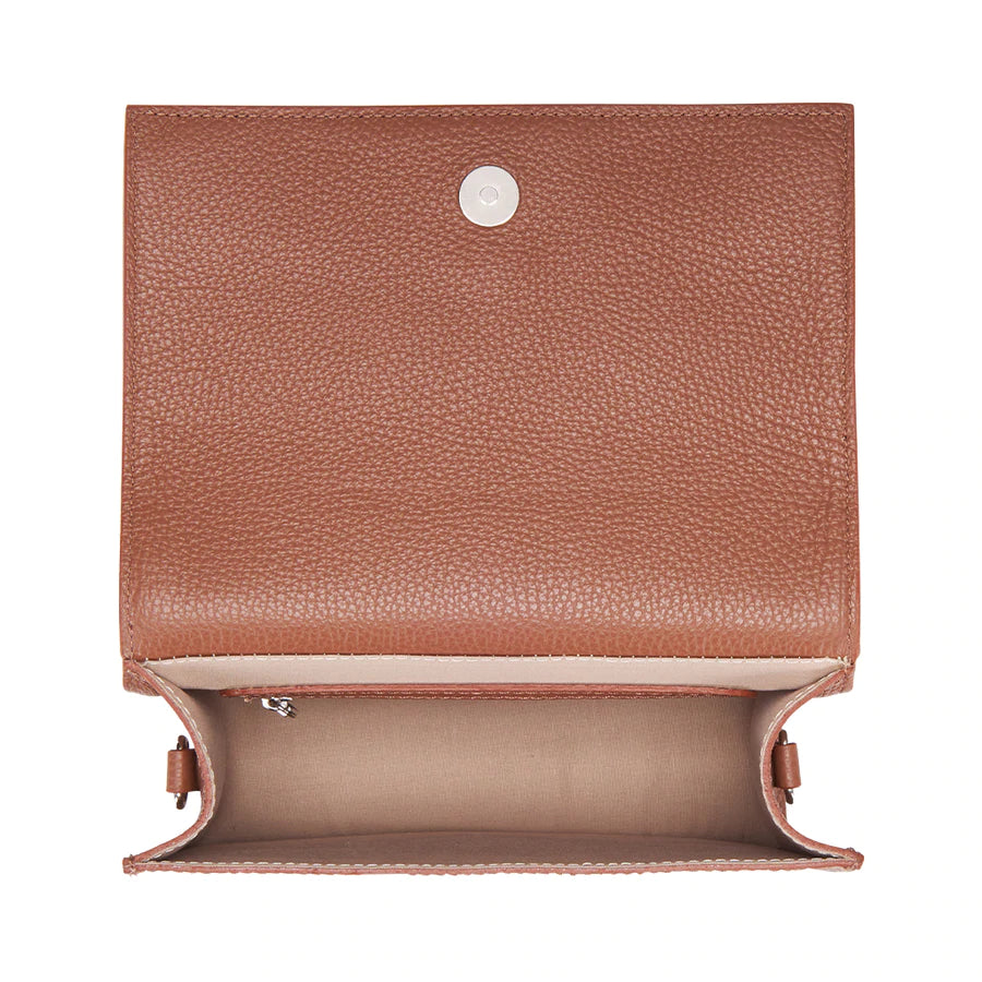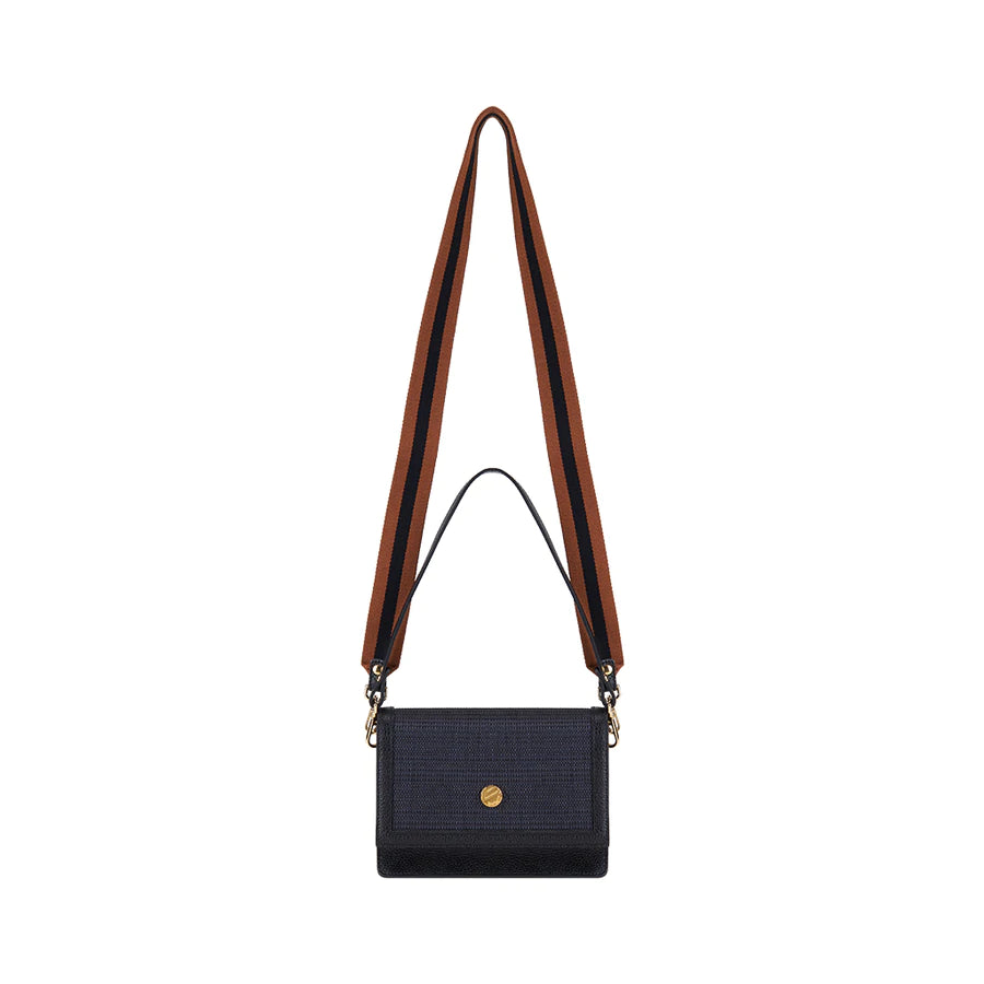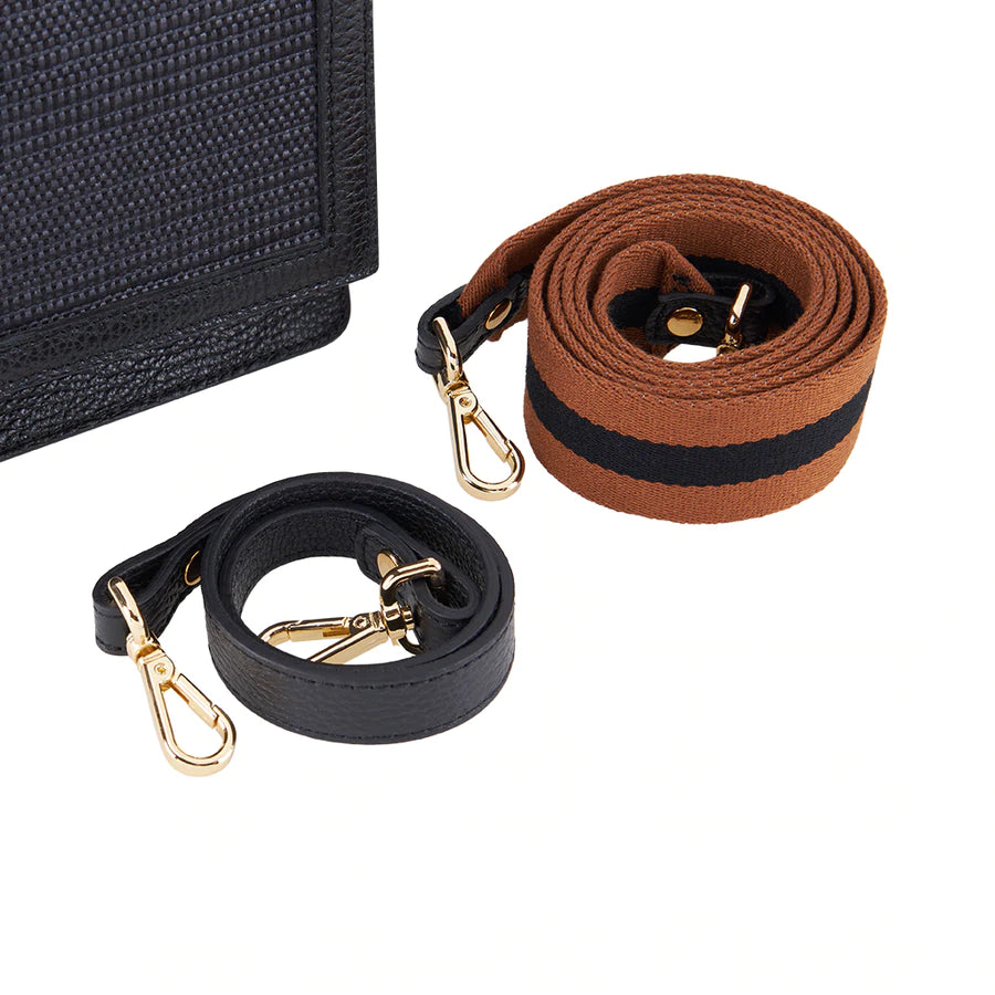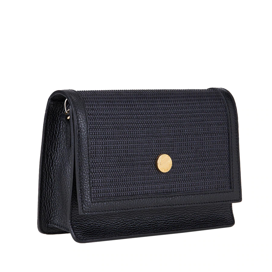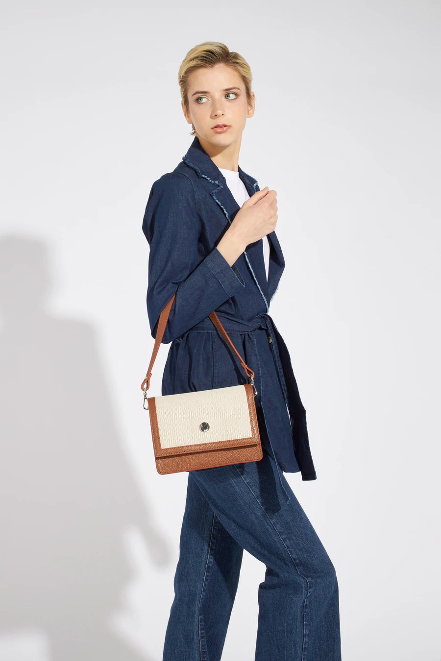 Salentina är en axelväska av raffia och kalvskinn tillverkad av Bonfanti.