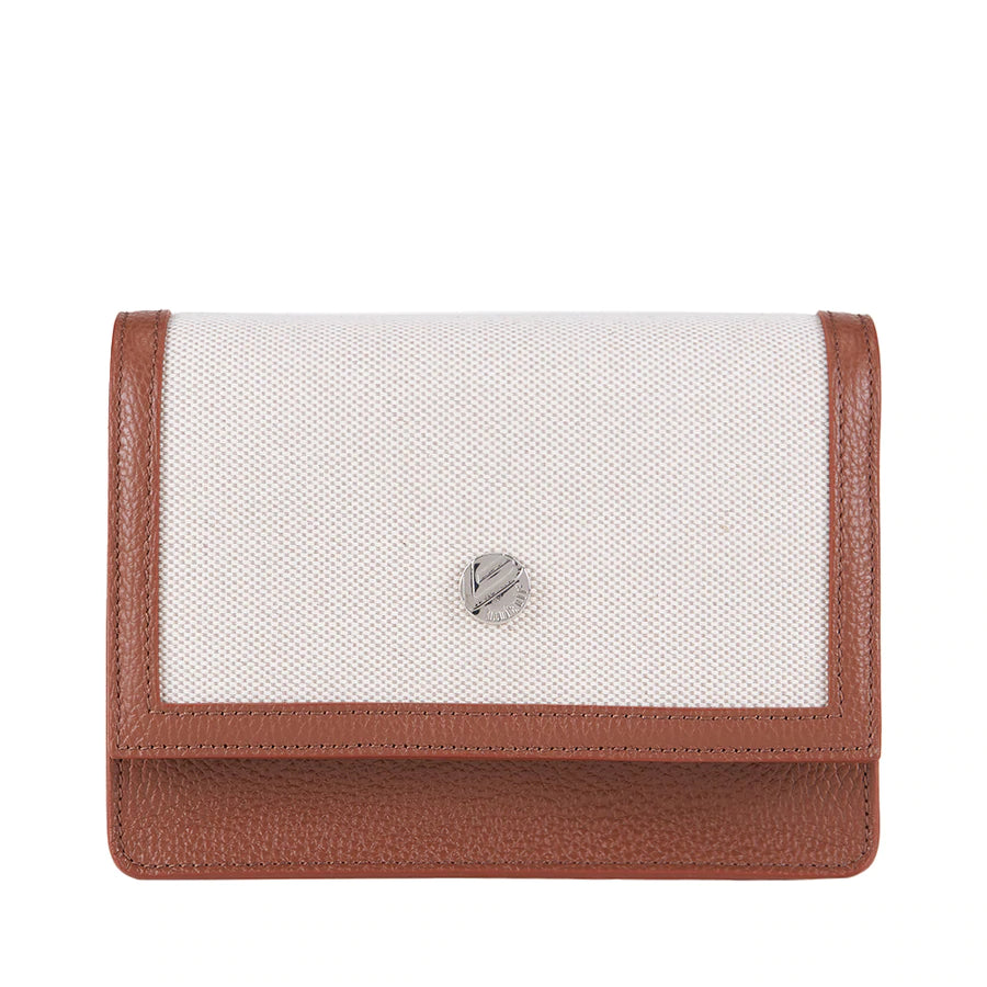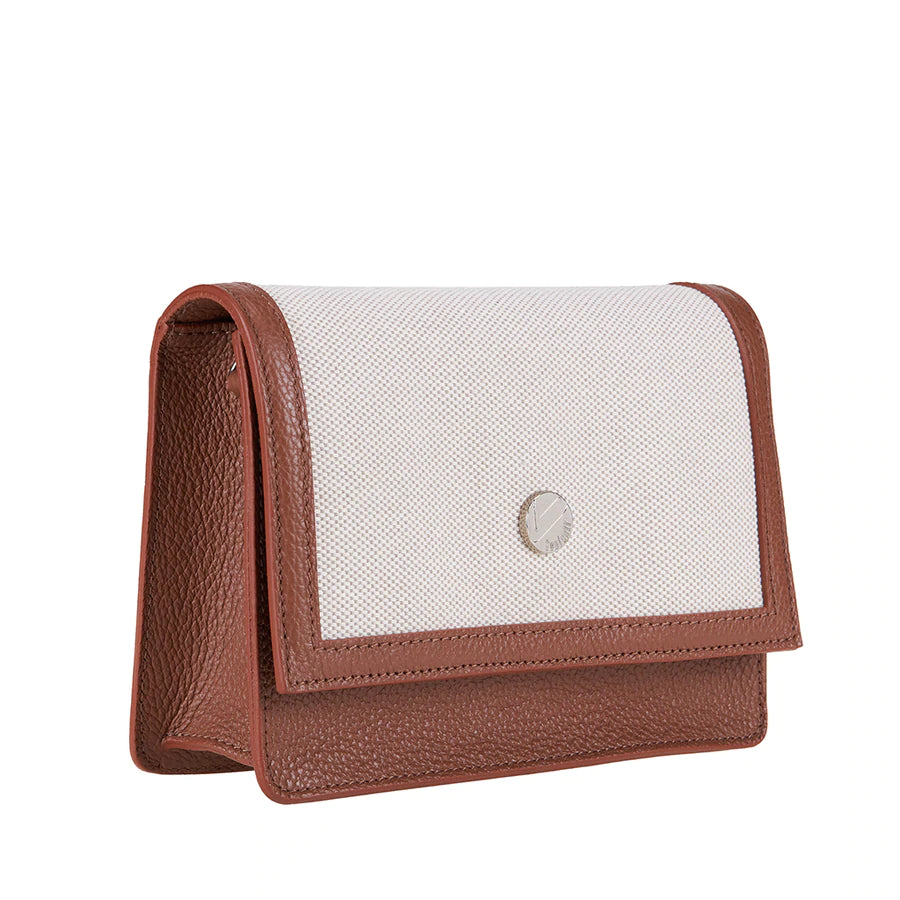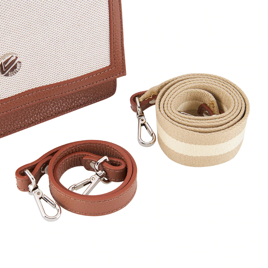 - Den ljusa beige-bruna: tillverkad av i bomull och kalvskinnsläder
